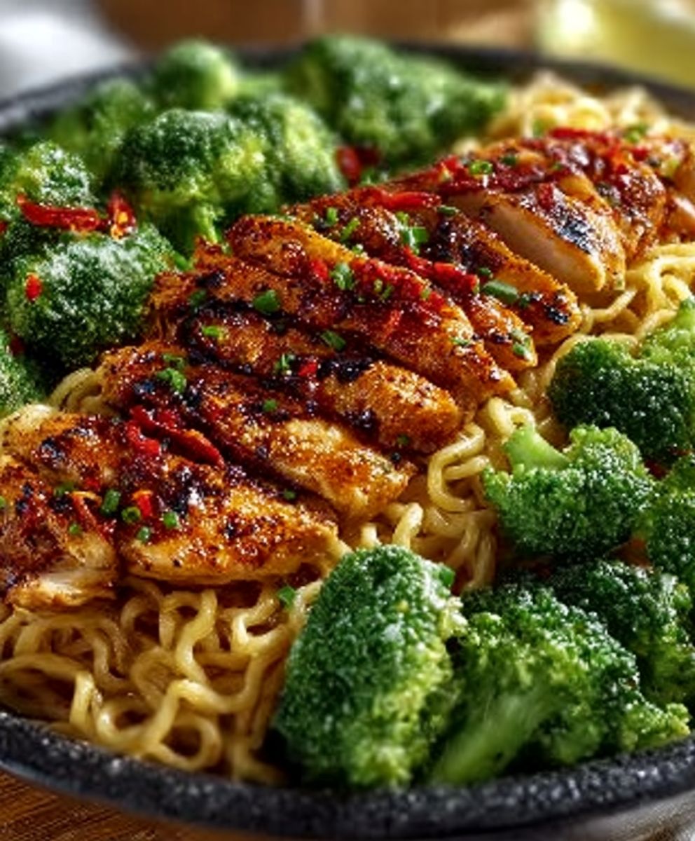 Spicy Garlic Chicken and Broccoli Noodle Bowls | Easy One-Pan Dinner