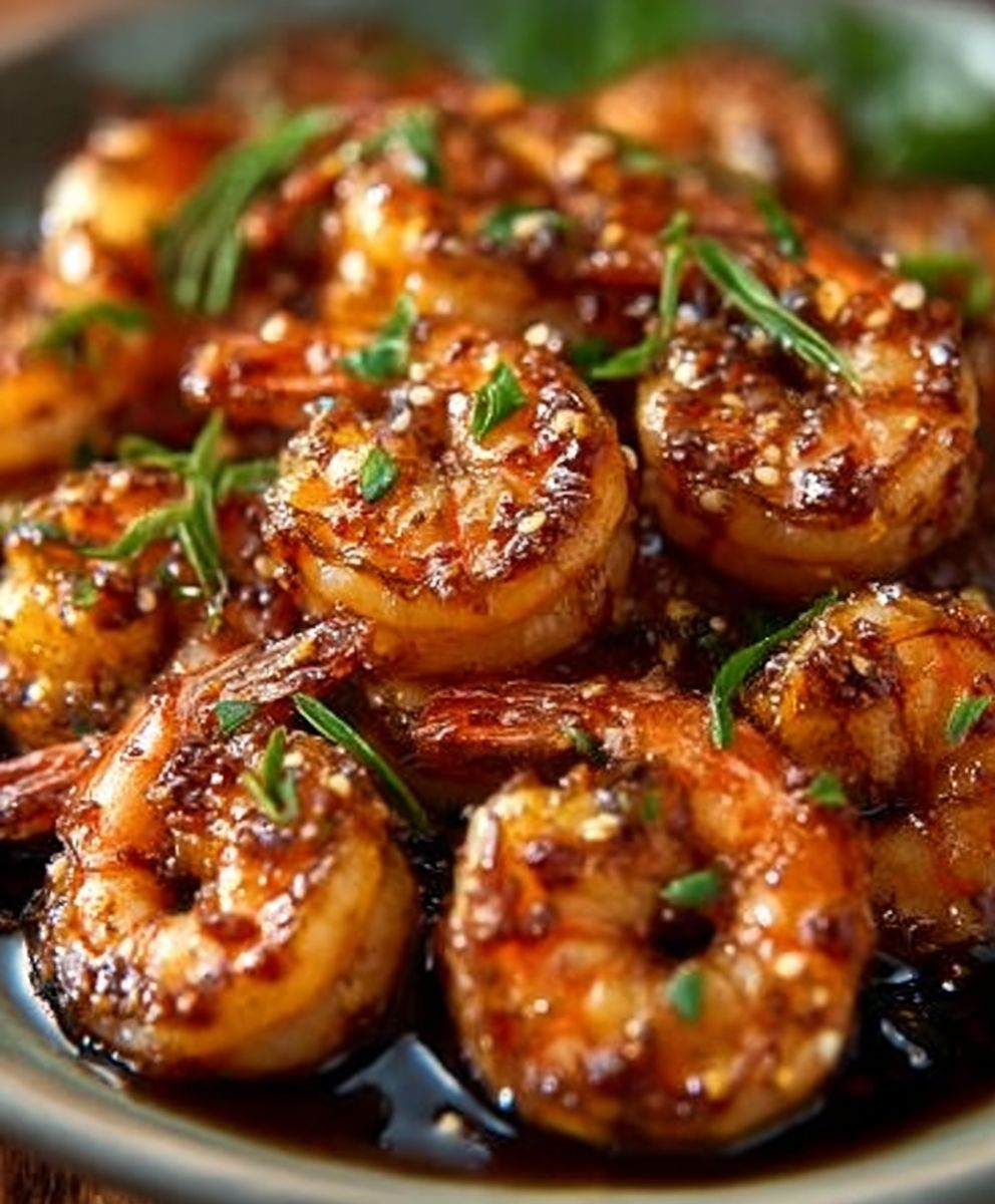 - Present a visually stunning meal with plump, golden-brown shrimp glistening in a rich, amber sauce, sure to impress anyone.