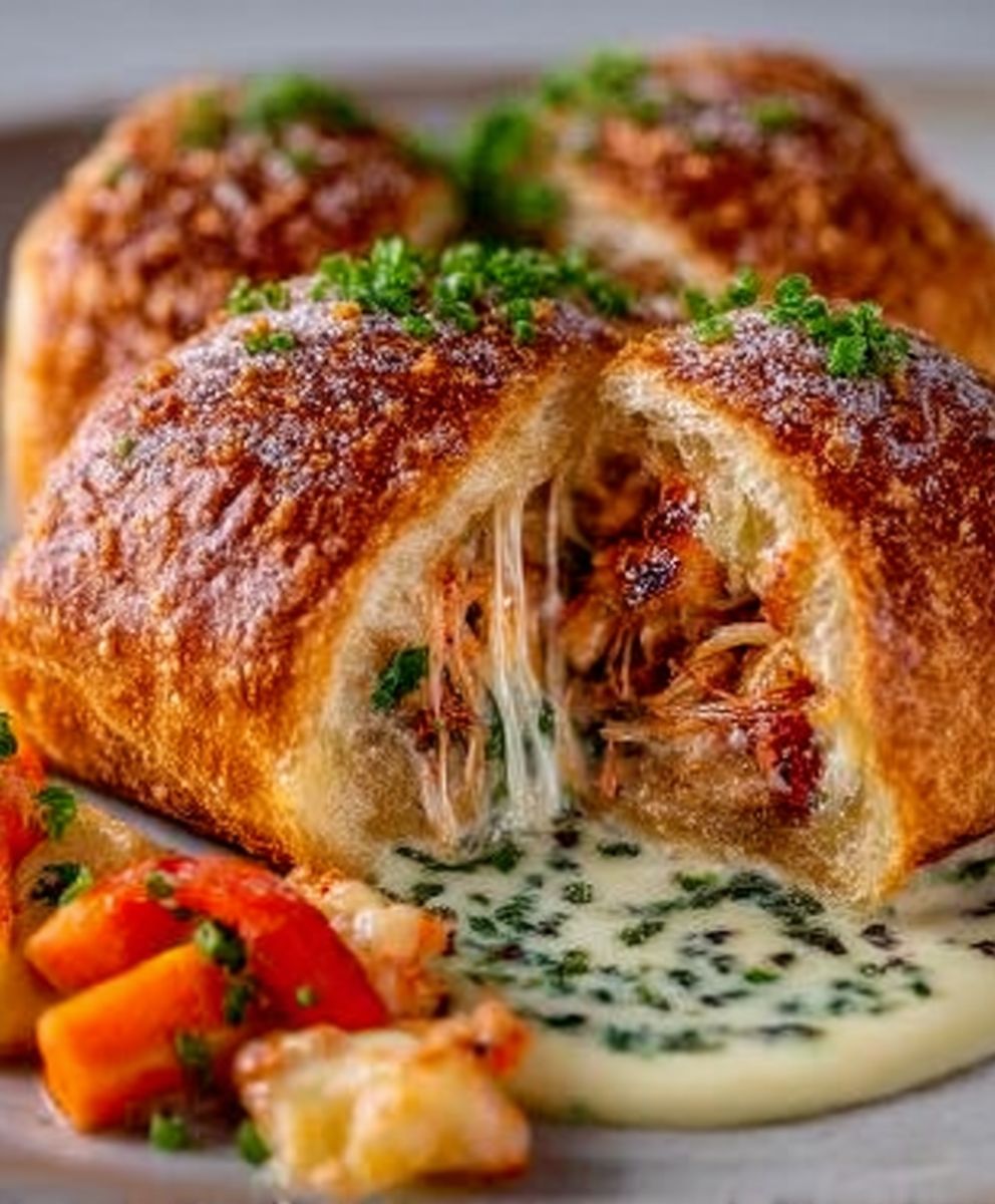 Every great recipe has a tale, and these Shrimp and Crab Stuffed Crescent Bombs have a rather endearing one. It all started with a desperate attempt to use up some leftover seafood from a rather ambitious seafood boil – a common occurrence in my kitchen, where my eyes are often bigger than my stomach (or my refrigerator space). The thought of letting perfectly good crab and shrimp go to waste was a culinary crime I simply couldn’t commit. My pantry, on the other hand, offered a beacon of hope: a forgotten tube of crescent roll dough, lurking in the back, patiently awaiting its destiny. A lightbulb moment, or perhaps more accurately, a flashing neon sign, went off. What if I combined the succulent seafood with a creamy, savory filling and tucked it all inside those flaky crescent pockets? The initial trials were… eventful. One batch resembled overstuffed burritos, another leaked all its glorious filling onto the baking sheet, creating a rather sad, flat seafood pancake. My kitchen smelled fantastic, but the aesthetics were questionable. However, through trial and error, and a few frantic calls to my incredibly patient (and slightly amused) grandmother for advice, I finally perfected the art of the “seafood bomb.” The first time I served them at a gathering, they vanished faster than free samples at a grocery store. My veggie platter days were officially over, replaced by a newfound reputation as the “crescent bomb wizard.” These aren’t just appetizers; they’re a testament to kitchen perseverance and the magic that happens when you combine delicious ingredients with a dash of culinary curiosity.